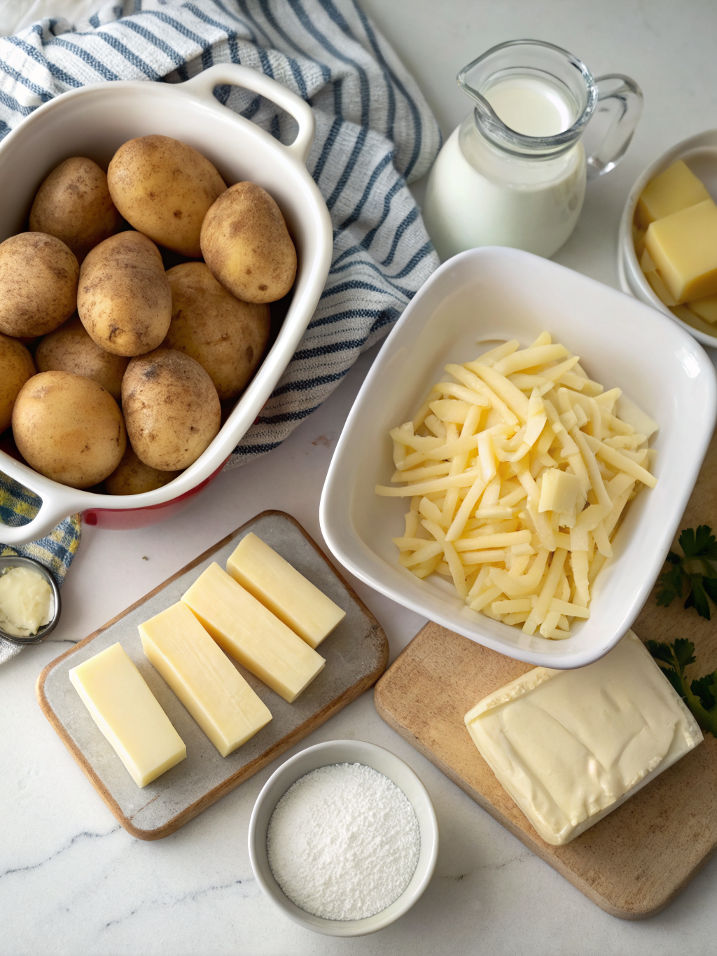 Gathering your ingredients is the first exciting step on your journey to creating an unforgettable cheesy potato bake. Each component plays a vital role in building layers of creamy, savory goodness.