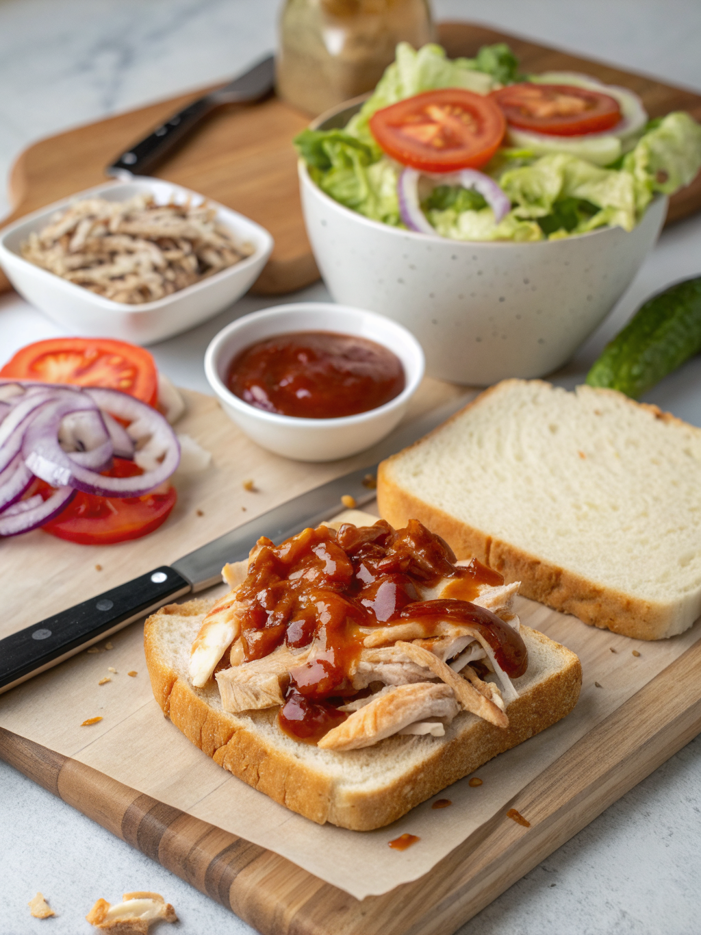 A: Definitely! You can easily adapt this by replacing the chicken with shredded portobello mushrooms, jackfruit, or even canned chickpeas (mashed slightly). Cook them down with the BBQ sauce as you would the chicken, and build your delicious vegetarian BBQ Sandwich.