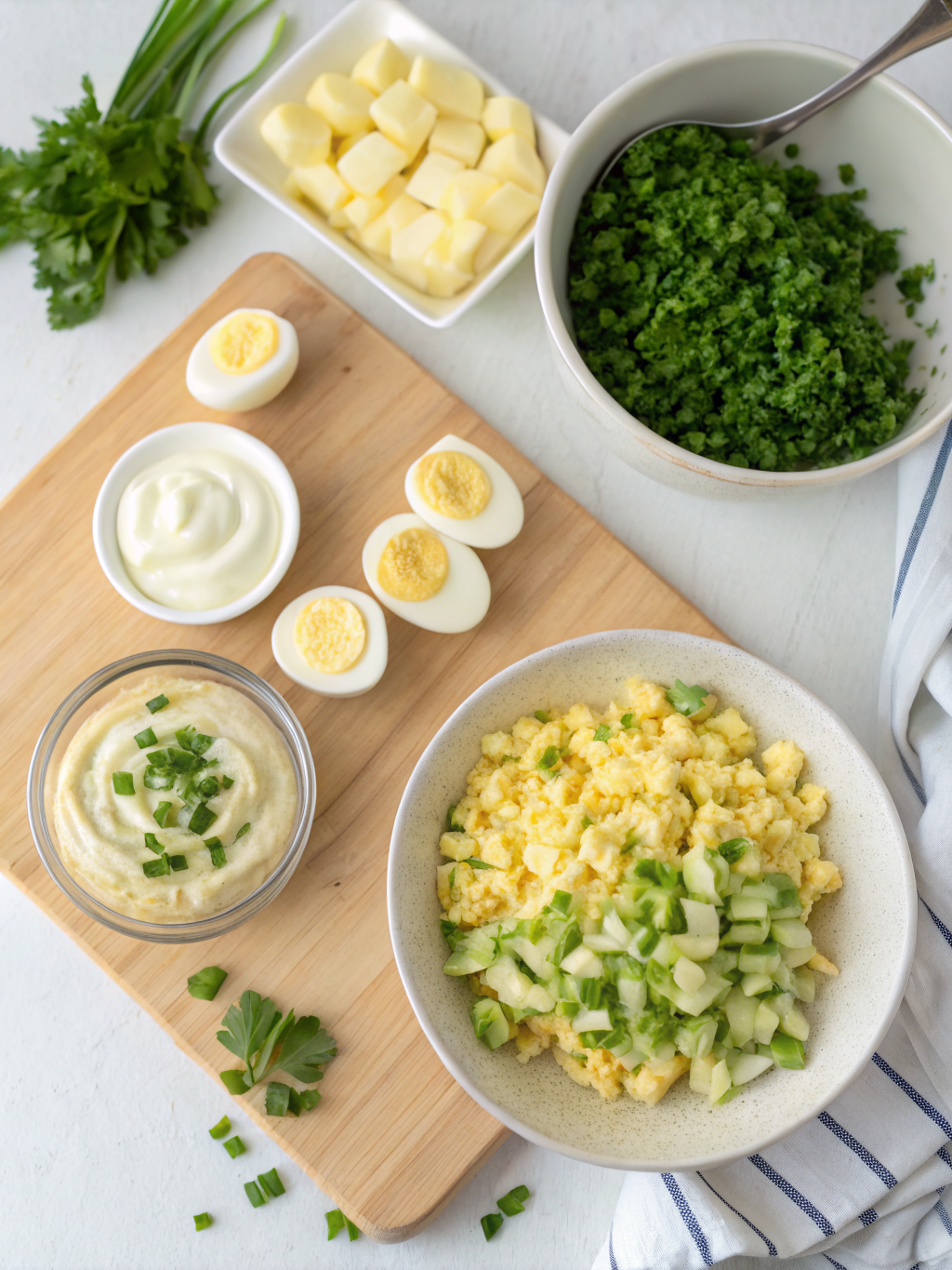 Crafting the perfect creamy egg salad begins with selecting the right components. Here’s what you’ll need to transform simple ingredients into a delightful culinary experience, along with some insightful substitutions: